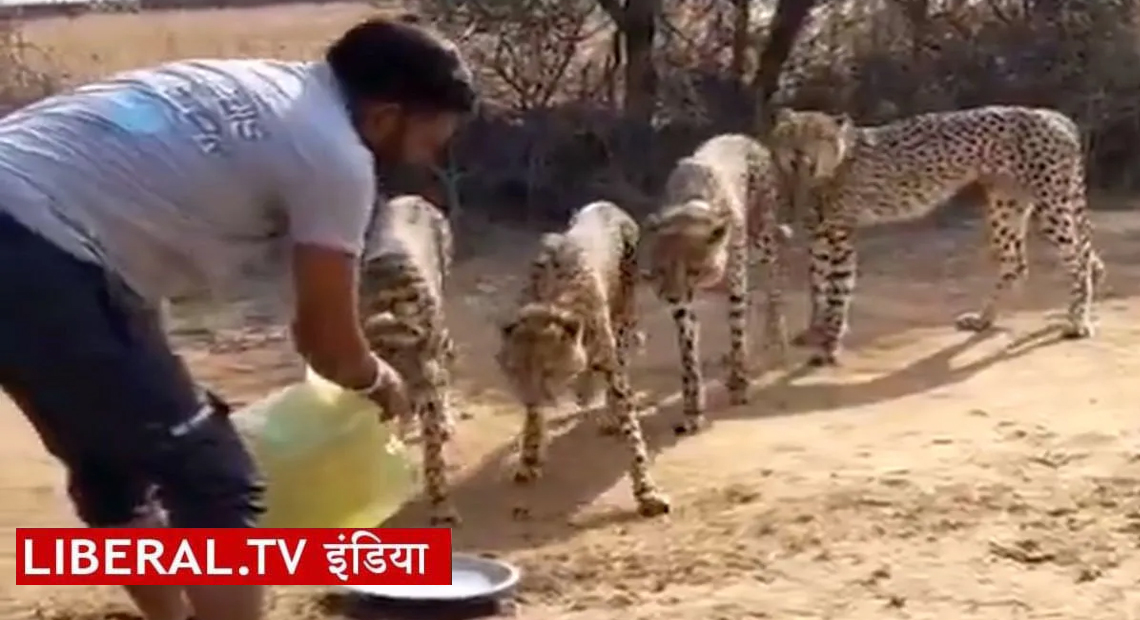 देश में एक समय ऐसा भी था कि जब एक भी चीता नहीं था। इसके बाद मध्य प्रदेश के श्योपुर जिले के कूनो नेशनल पार्क में चीतों को विदेश से लाया गया। अब यहां का जंगल चीतों से आबाद है। चीता ज्यादा और उसके चार शावकों को अब जंगल में खुले में छोड़ दिया गया है। कुछ दिन पहले एक वीडियो आया था, जिसमें लाठी लेकर लोग चीतों को भगा रहे थे। दरअसल ये चीते बकरियों का शिकार कर रहे थे। इससे लोग बेहद डरे हुए थे, लेकिन अब एक वीडियो ऐसा भी आया है, जिसमें मादा चीता ज्वाला अपने चार शावकों के साथ पानी पीती दिख रही है। यह पानी उसे चीता मित्र की ओर से पिलाया जा रहा है। इस दौरान चीता फैमिली बेहद शांत और दोस्ताना माहौल में पानी पीती नजर आ रही है।