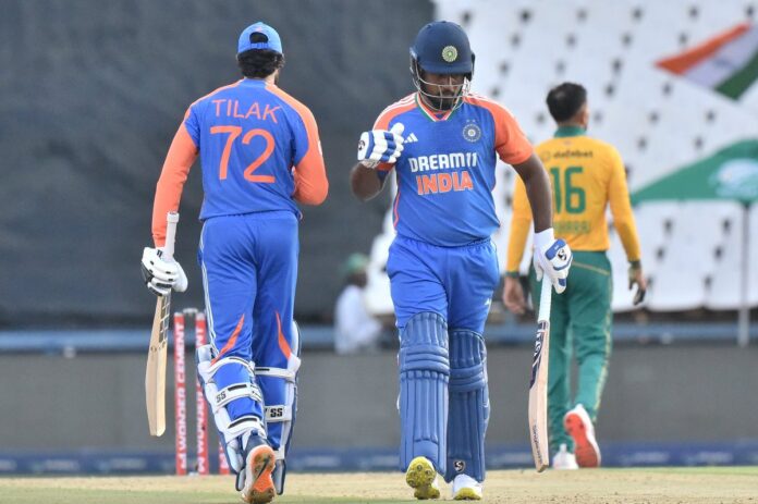 भारत और दक्षिण अफ्रीका की टीम के बीच जोहान्सबर्ग के मैदान पर चौथा T20 मुकाबला खेला जा रहा है। इस मुकाबले में भारत की टीम ने रिकॉर्ड बनाते हुए निर्धारित 20 ओवर में एक विकेट के नुकसान पर 283 रन बनाए हैं और 284 रनों की चुनौती दक्षिण अफ्रीका की टीम के सामने रखी है। भारतीय टीम की ओर से दो खिलाड़ियों ने एक ही मैच में शतक जड़े हैं। संजू सैमसन ने 109 और तिलक वर्मा ने 120 रनों की पारी खेली।