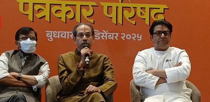 ​प्रेस कॉन्फ्रेंस से पहले उद्धव ठाकरे ने एक बड़ा बयान देते हुए कहा, “हमारी सोच एक है। दिल्ली में बैठे लोग मुंबई को तोड़ने और उसे महाराष्ट्र से अलग करने की कोशिश कर रहे हैं। हम ऐसा कभी नहीं होने देंगे।”