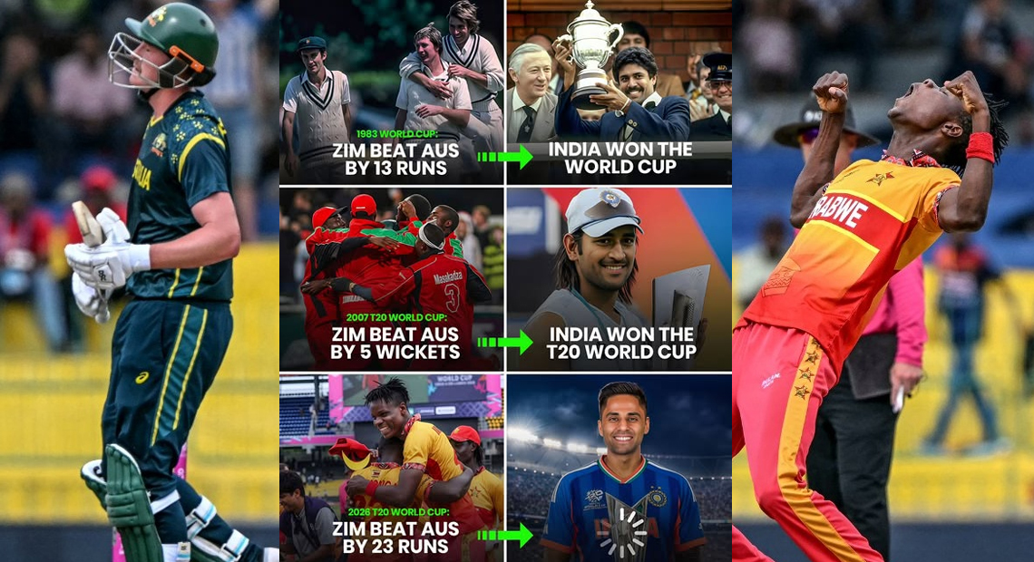 टी20 वर्ल्ड कप 2026 में जिम्बाब्वे ने ऑस्ट्रेलिया को हराकर एक बड़ा ऐतिहासिक उलटफेर कर दिया है। इस जीत के साथ ही एक बेहद रोचक और शुभ संयोग भी सामने आया है, जिसने भारतीय प्रशंसकों की उम्मीदें बढ़ा दी हैं कि टीम इंडिया इस बार भी विश्व चैंपियन बनेगी।