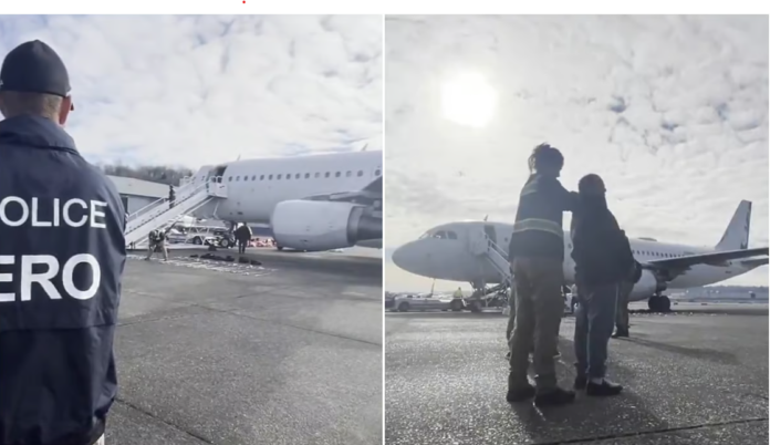 Before the White House shared the video, it was originally posted by the Seattle office of the U.S. Immigration and Customs Enforcement (ICE) agency under the caption “Removal Flight.” ICE’s post described the flight as part of the process of repatriating undocumented immigrants to their home countries. However, the White House version began with an additional scene, showing an officer rolling down the collar of a shackled detainee’s jacket or hooded sweatshirt.