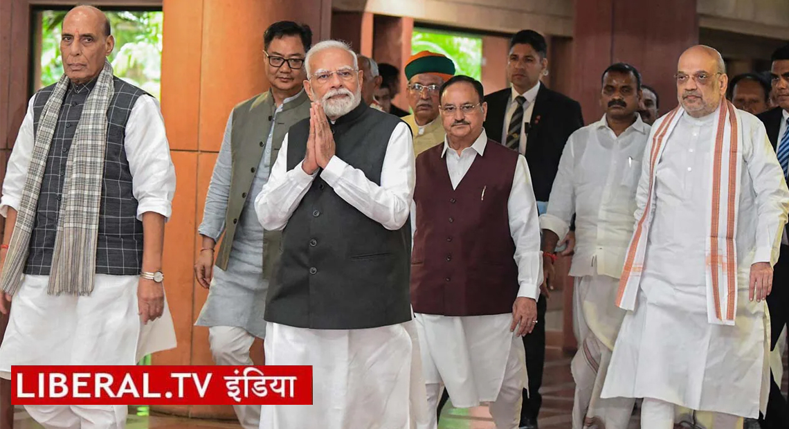 - प्रधानमंत्री नरेंद्र मोदी के साथ गृह मंत्री अमित शाह, वर्तमान पार्टी अध्यक्ष जेपी नड्डा और पार्टी के राष्ट्रीय महासचिव (संगठन) बीएल संतोष की मुलाकात हुई।