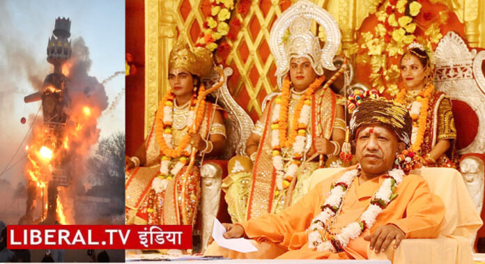 धर्म एवं सत्य की विजय के प्रतीक पर्व विजयादशमी गोरखनाथ मंदिर से जय श्री राम के गगनभेदी उद्घोष के साथ भव्य-दिव्य शोभायात्रा निकाली गई। उप्र के मुख्यमंत्री योगी आदित्यनाथ शोभायात्रा में शामिल हुए। उन्होंने मर्यादा पुरुषोत्तम प्रभु श्री राम और माता जानकी के प्रतीक स्वरूपों के पूजन-अर्चन किया। सीएम योगी आदित्यनाथ ने इस अवसर पर कड़ी चेतावनी देते हुए कहा कि अगर कोई मानवता के खिलाफ कार्य करेगा,गरीबों, महिलाओं पर अत्याचार करेगा, अधर्म और असत्य के मार्ग पर चलेगा तो उसका पुतला भी ऐसे ही जलाया जाएगा, जैसे रावण के पुतले जलाए जाते हैं।